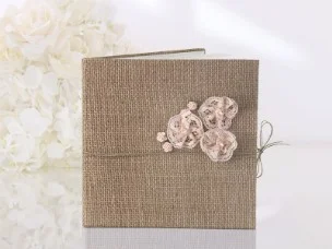 - Materiale Stoffa di juta con cordicella e rosa di merletto